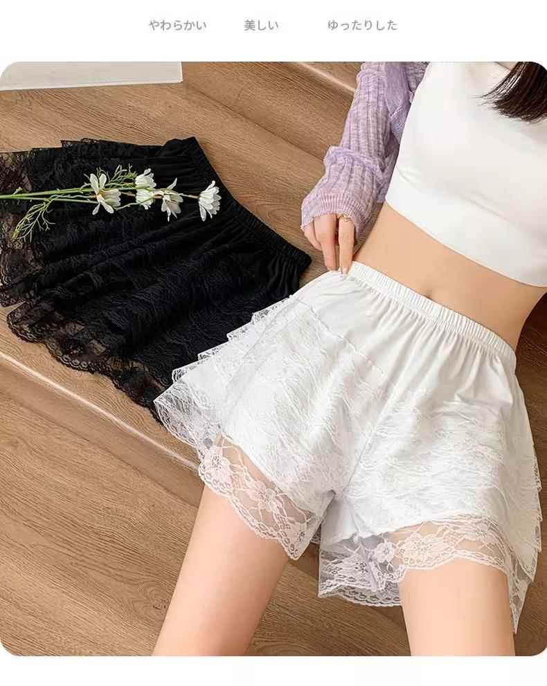 二段フリルレースの見えてもいいペチコートキュロット