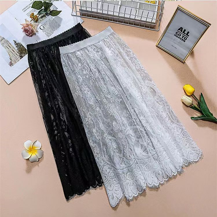 スカートやワンピースのインナーとして重ねれば、裾からちらりと覗くレースが女性らしさを演出します。
