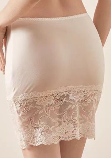 裾部分に繊細な花柄の総レースをあしらった上品なペチコートです。 なめらかな肌触りの生地を使用し、透け防止とシルエット補正を両立しました。 レースが優雅に広がるデザインで、スカートやワンピースの下に重ねるだけで女性らしい装いが完成します。 ウエストはゴム仕様で着脱も簡単です。 普段使いから特別な日まで幅広くお使いいただける便利なインナーアイテムです。